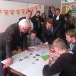 Minister Steinmeier en Koenders met leerlingen in de Duitse les.